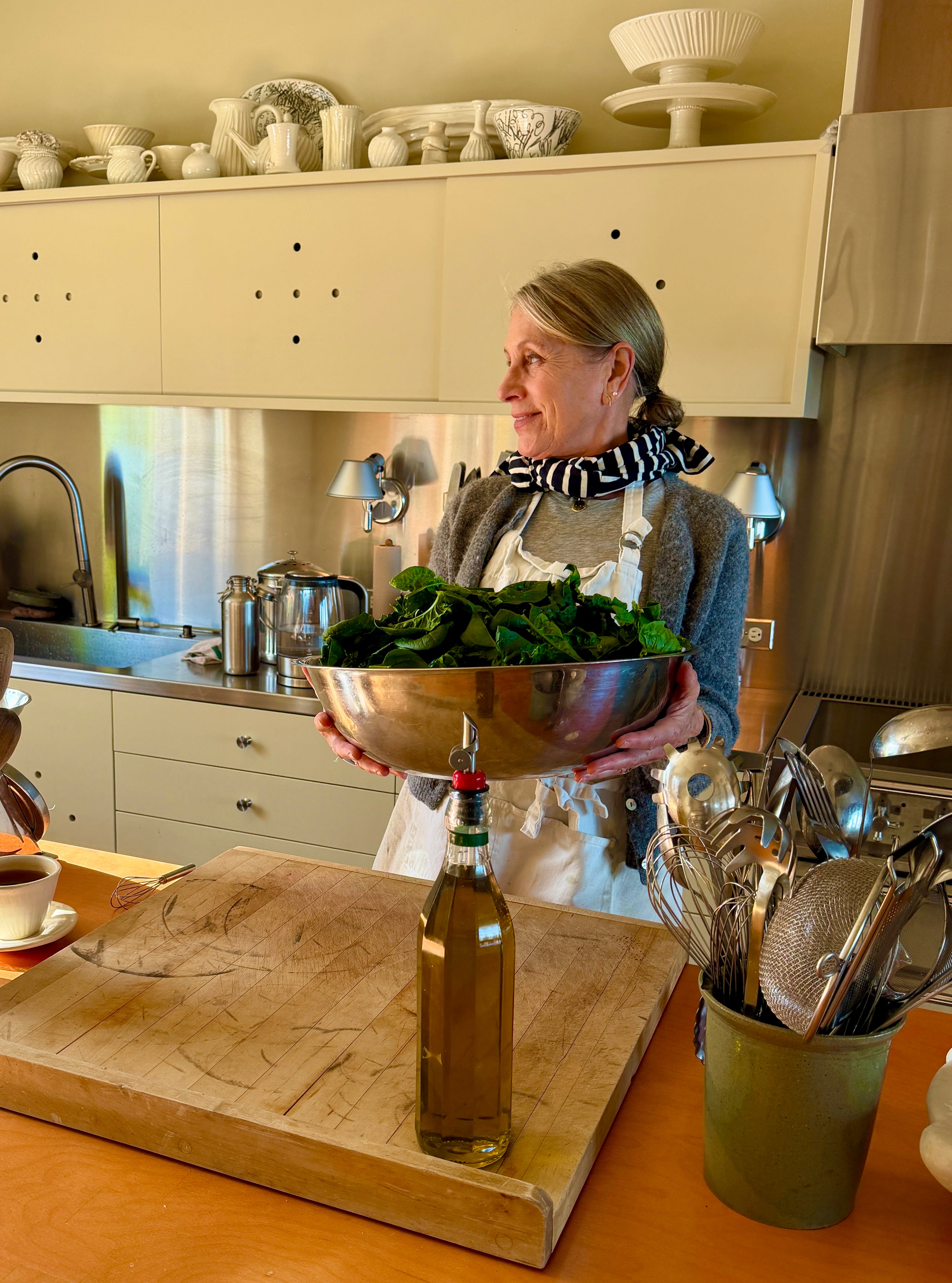 But don’t get me wrong, I do very much love to EAT spinach souffle, and whenever I encounter it on a menu or read about it or taste it, I am instantly transported, like Proust and his madeleines, to a time when the dish was a vital element in my daily routine.